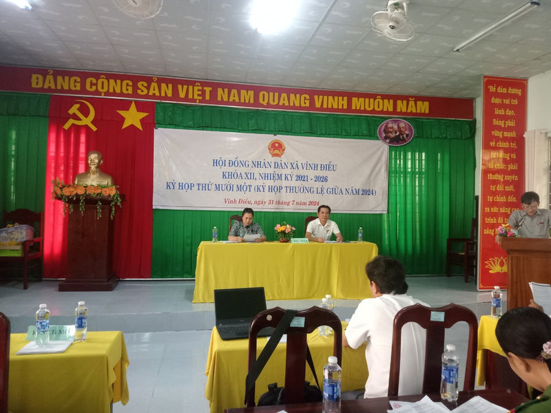 Chiều ngày 31/7, HĐND xã Vĩnh Điều khóa XII, nhiệm kỳ 2021 - 2026 đã tổ chức Kỳ họp thứ Mười một (kỳ họp thường lệ giữa năm 2024) để đánh giá kết quả thực hiện nhiệm vụ phát triển kinh tế - xã hội 6 tháng đầu năm; thảo luận, quyết định phương hướng, nhiệm vụ 6 tháng cuối năm 2024 và cùng một số nội dung thuộc thẩm quyền.