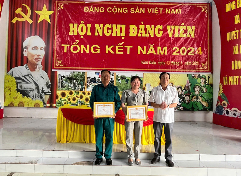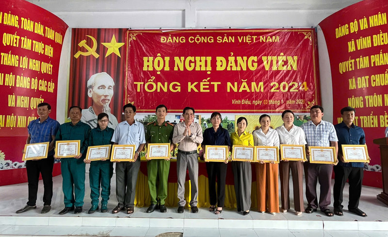 Tại hội nghị, Đảng bộ xã Vĩnh Điều lãnh đạo đã trao giấy khen cho 02 tập thể và 23 cá nhân đã hoàn thành xuất sắc nhiệm vụ trong năm 2024./.