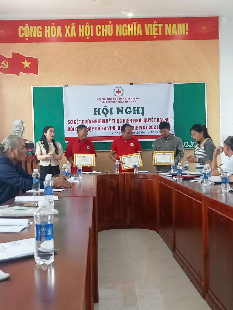 Vừa qua, Hội chữ thập đỏ xã Vĩnh điều tiến hành hội nghị Sơ kết giữa nhiệm kỳ đánh giá thực hiện Nghị quyết Đại hội, đại biểu Hội Chữ thập đỏ xã Vĩnh Điều khóa VIII nhiệm kỳ 2021-2026. Đến dự gồm có đồng chí Trần Văn Phương- Chủ tịch Hội Chữ thập đỏ huyện; đồng chí Trần Thanh Tiền- Phó Bí thư Đảng ủy xã; đồng chí Hà Thị Huệ- Phó chủ tịch UBND xã.